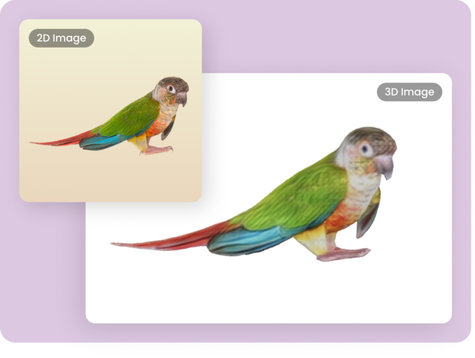 Experience the power of our AI 2D to 3D image converter that transforms your flat images into dynamic, multi-dimensional models. Whether you're looking to convert a 2D image to a 3D model for art or prototyping, our tool preserves essential details and adds depth to your designs.