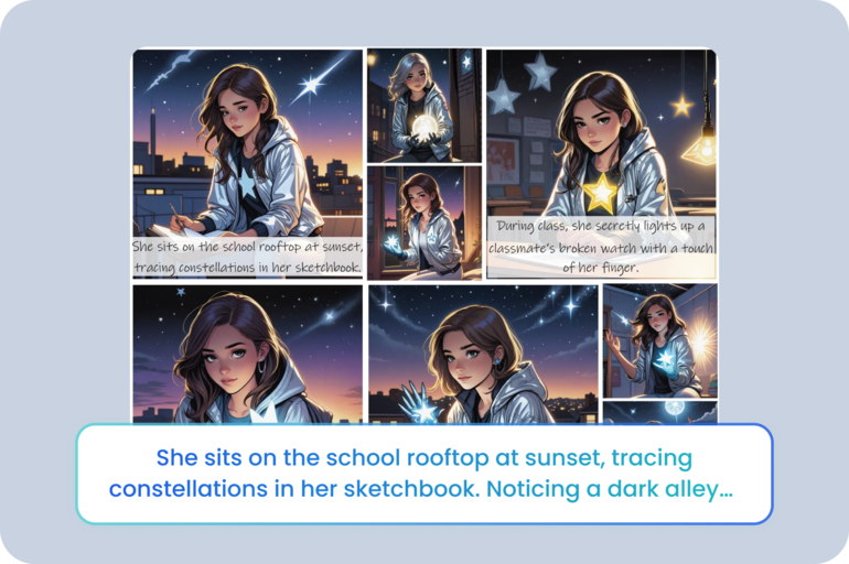 No steep learning curve or expensive tools. Just enter your ideas and watch your vision turn into polished, professional-looking comics.