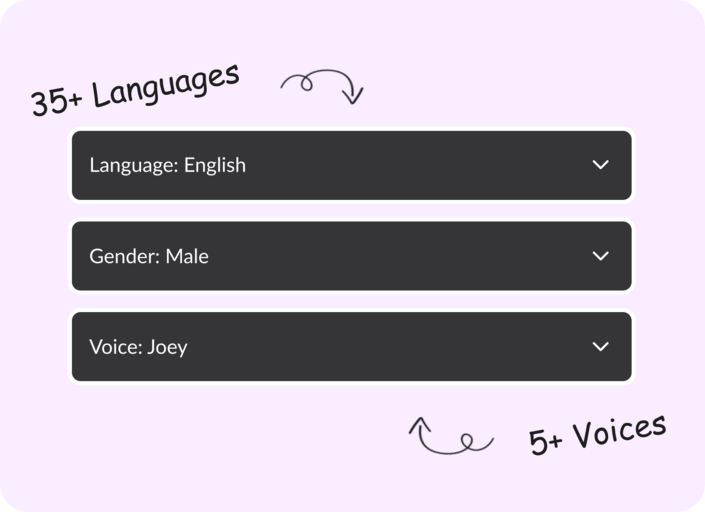 Choose from a diverse selection of languages to create voiceovers for global audiences, ensuring precise pronunciation and natural fluency.