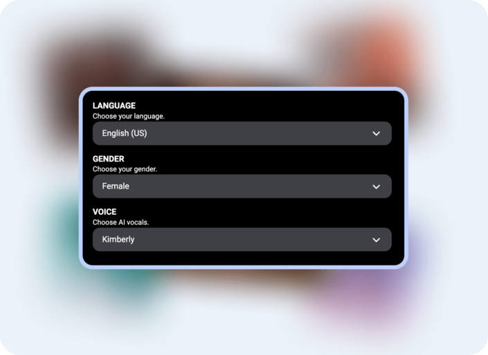 You can select vocals based on the language and gender you specify in the preset fields. This ensures that the voiceover matches your project’s requirements with accurate pronunciation and an appropriate tone.