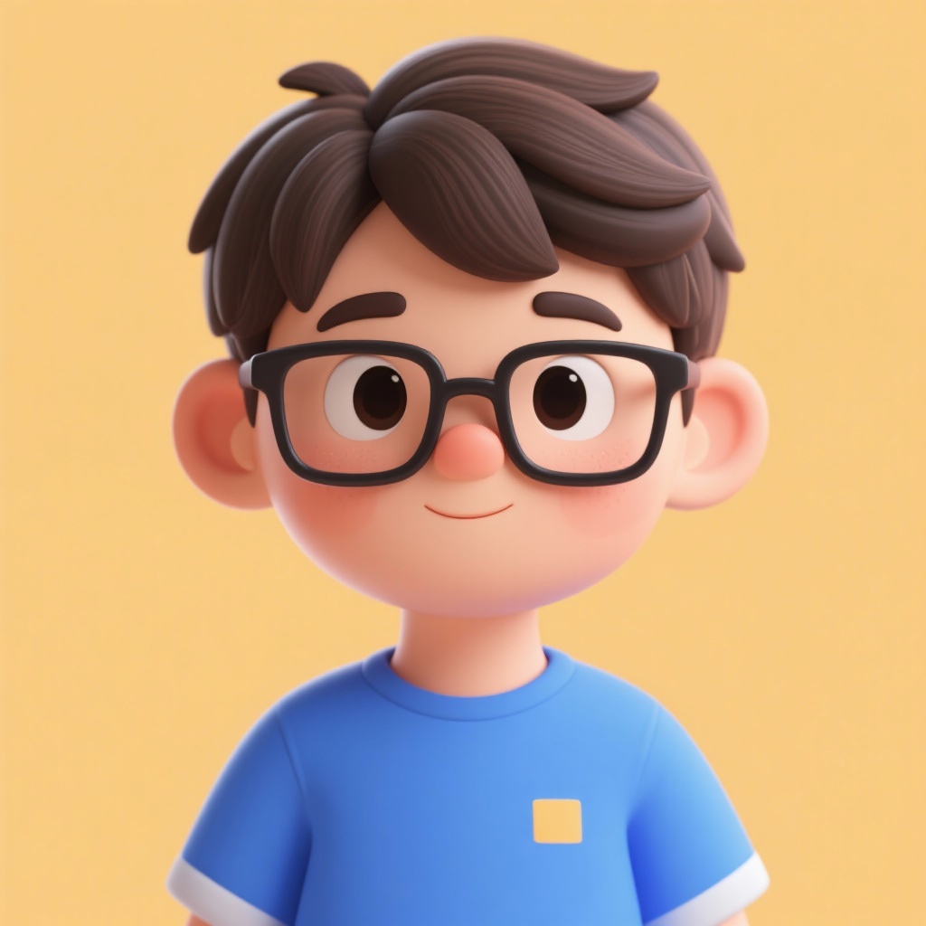 A boy wearing glasses and a blue T-shirt from [Image 1] and a corgi dog from [Image 2], sitting on the lawn from [Image 3], in 3D cartoon style