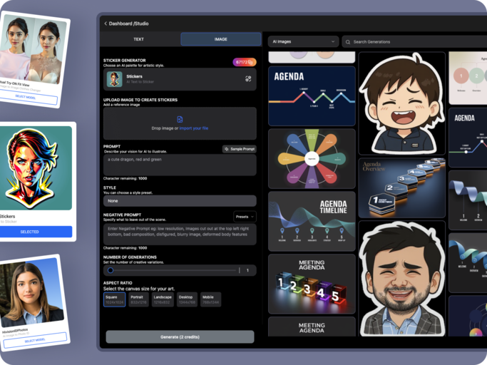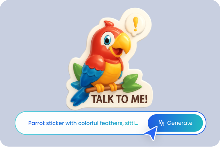 Transform your words into vibrant, custom-designed stickers using our AI-powered tool. From quotes and jokes to greetings and captions, anything you type can become sticker-worthy.