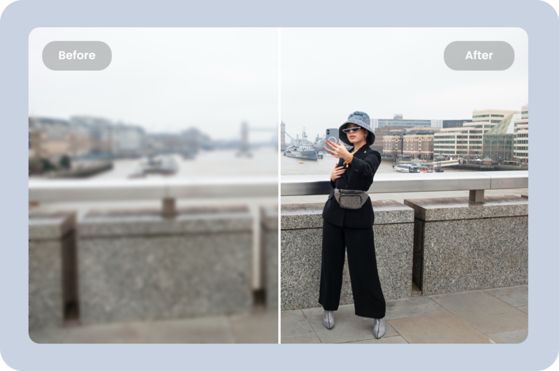 Let AI upscale your footage with precision and clarity, bringing out every detail in stunning resolution. The technology sharpens visuals, balances lighting, and restores texture for a professional-grade finish.